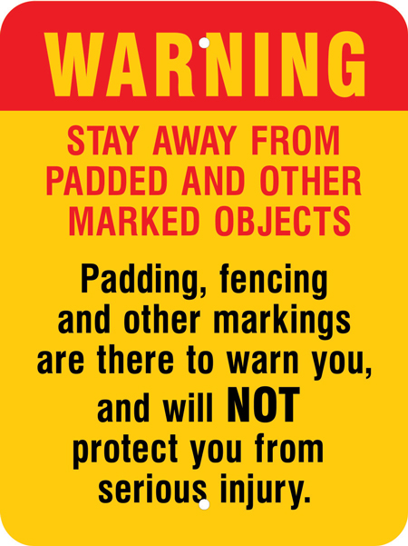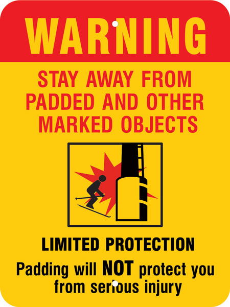 Designed to warn and inform, these signs remind skiers and riders that any padding or marking devices indicate a potential hazard or obstacle, and further emphasize that these devices can offer only limited protection. While collisions with man-made objects have long been recognized as an inherent risk in the sport, these new signs complement Your Responsibility Code, reminding all skiers and riders that it is their responsibility to stay in control and avoid man-made objects.